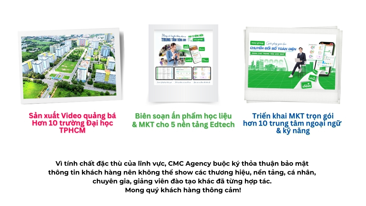Đội ngũ CMC Agency sẽ không ngừng tiếp thu, cải tiến, nỗ lực nâng cao trình độ chuyên môn và lắng nghe vấn đề trăn trở của từng doanh nghiệp để có hướng hỗ trợ phù hợp.
